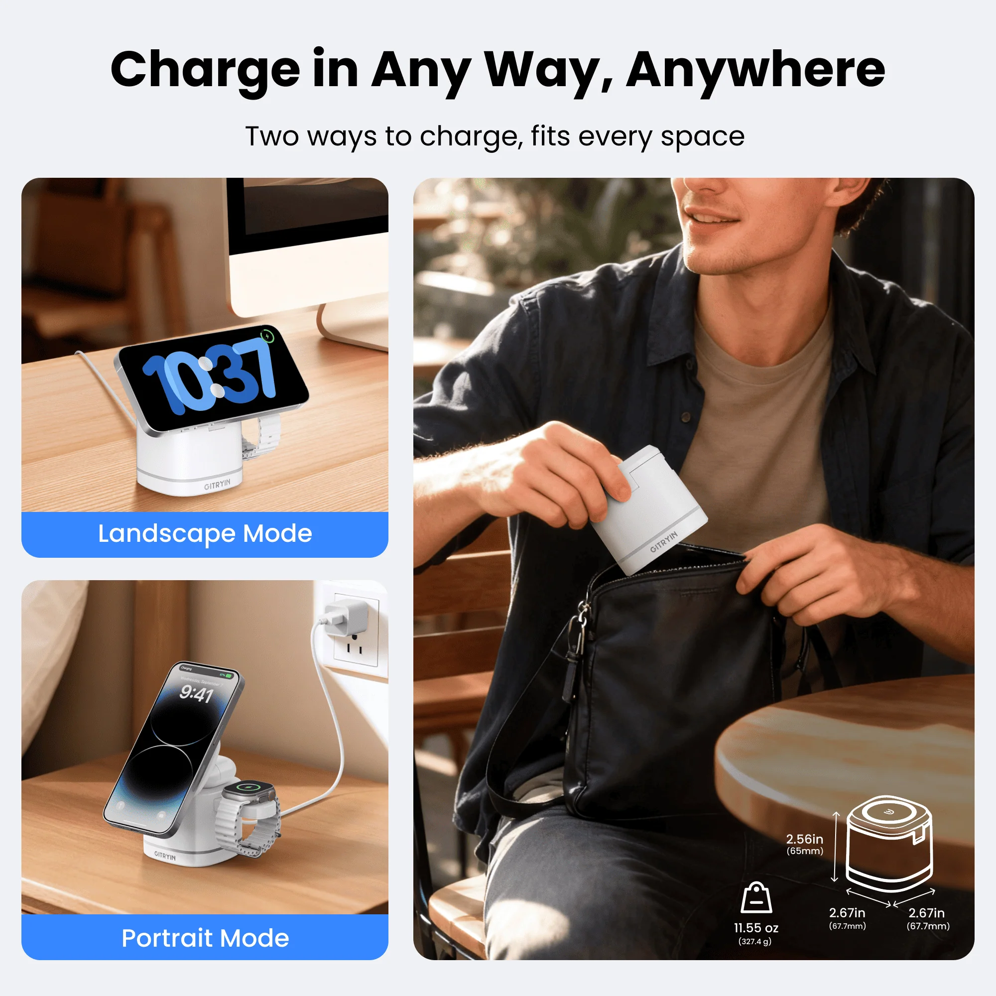 Gitryin Magnetic 3-in-1 Wireless Charging Station for 3C Devices