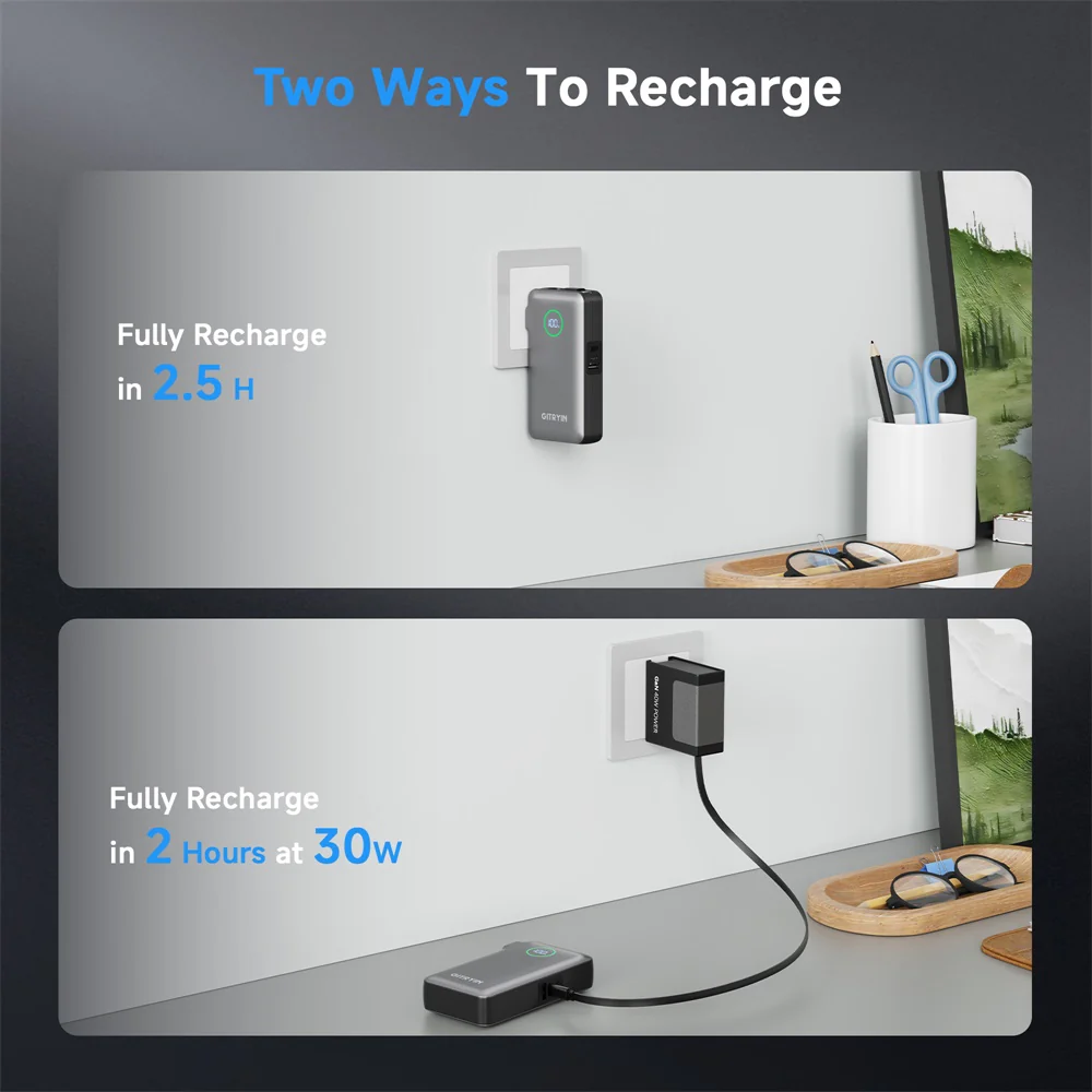 Gitryin Retractable Power Bank – 10,000mAh portable charger with retractable cable and 35W fast charging.